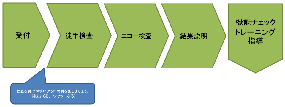 肘の痛みや動き(可動域)等を理学的にチェックします。